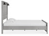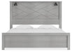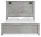 Cool, clean and casually modern. This bedroom set’s wispy dove gray finish sets the tone for your calming sanctuary. Framed elements and cross-brace accents add dimension and authenticity to the bed’s simply stunning profile. The storage pieces' large linear pulls and smooth-gliding drawers neatly accommodate your wardrobe and bedside storage needs.