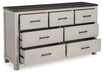 - 7 smooth-gliding drawers with fully finished interiors and metal ball-bearing side glides; upper drawer felt lined