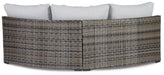This cool, casual outdoor loveseat will raise the comfort level and visual appeal of your outdoor living space. Made of handwoven wicker in neutral tones of light and dark gray, the curved loveseat with cushion blends beautifully into your lanai or pool and patio area with thick, comfy cushions wrapped in Nuvella® high performance fabric that is stain resistant, fade resistant and easy to clean. The cushioned loveseat can be used on its own or paired with other pieces of the matching sectional to create a space that holds up to Mother Nature and ages gracefully for years of enjoyment. Two pillows are thrown in for added comfort and a splash of color.