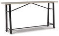 Bring that trendy bar atmosphere home with this long counter-height table. Featuring an acacia veneer tabletop in a whitewashed finish and a dark metal frame for farmhouse fresh appeal, it works well against an open wall or floated behind a sofa to make the most of your living space. Customize your comfort with adjustable height swivel stools (sold separately).